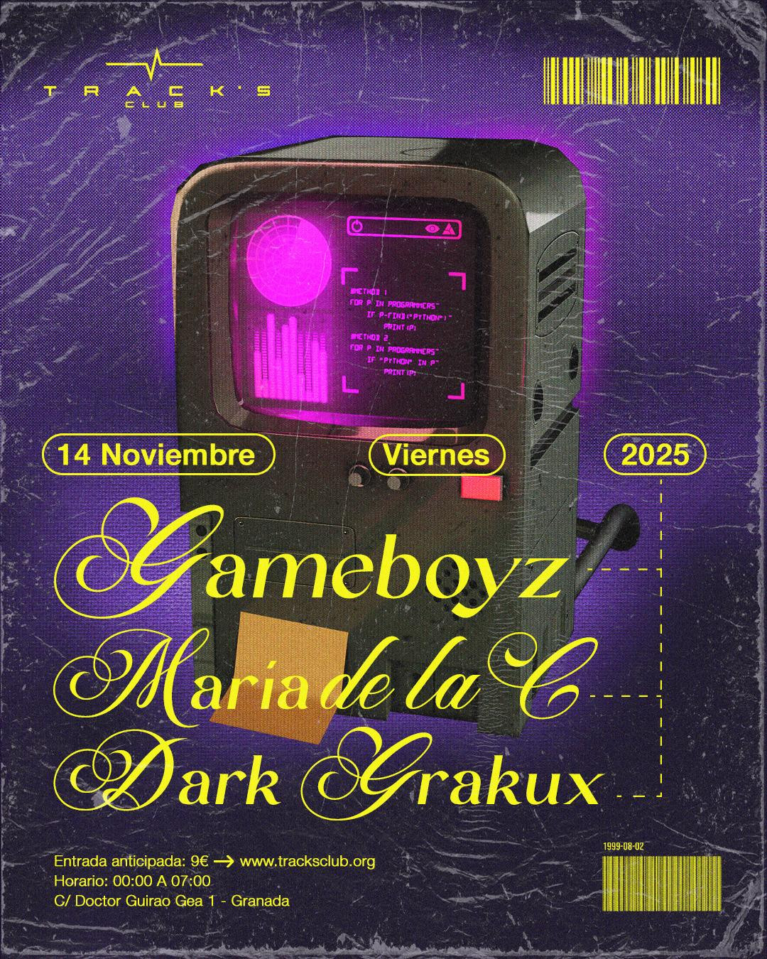 Comparte y únete a la energía con los hashtags: #TracksClub #Gameboyz #MaríadelaC #DarkGrakux #GranadaNights #FiestaTraviesa